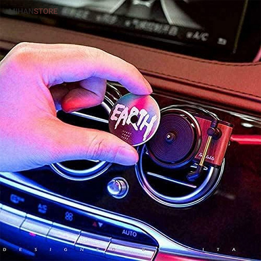 خوشبو کننده داخل خودرو یکی از وسیله های مورد نیاز داخل خودرو است که هم باعث تغییر بوی داخل خودرو میشود هم باعث زیبا تر شدن فضای داخلی خودرو میشود اگر این محصول تزیینی باشد . این محصول در دریچه کولر خودرو نصب میشود و طرح گرامافون دارد که حس نوستالژیکی به داخل خودرو میدهد . با ورود باد کولر یا بخاری به این محصول صفحه روی آن شروع به چرخش میکند همانند یک گرامافون قدیمی . داخل بسته بندی محصول قرص خوشبو کننده قرار دارد که روی صفحه مشکی وسط قرار میگیرد . بعد از اتمام پخش بوی آن میتوایند از هر عطر و ادکلنی که مورد پسند شما است روی آن اسپری کرده و مجدد استفاده کنید .