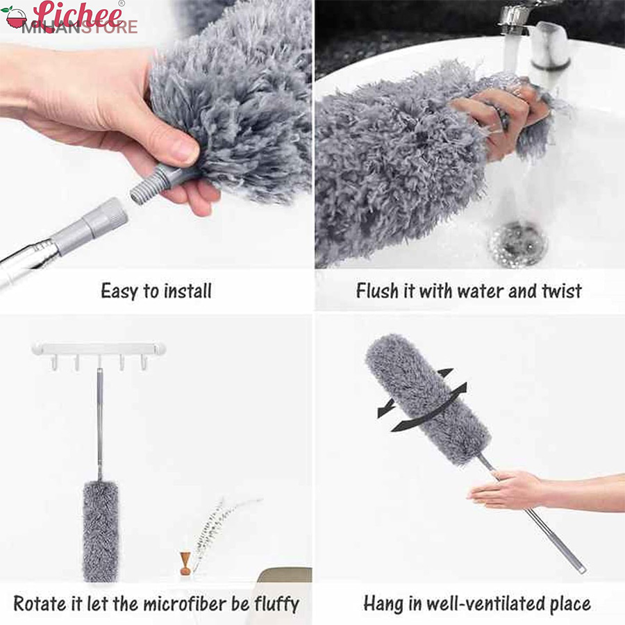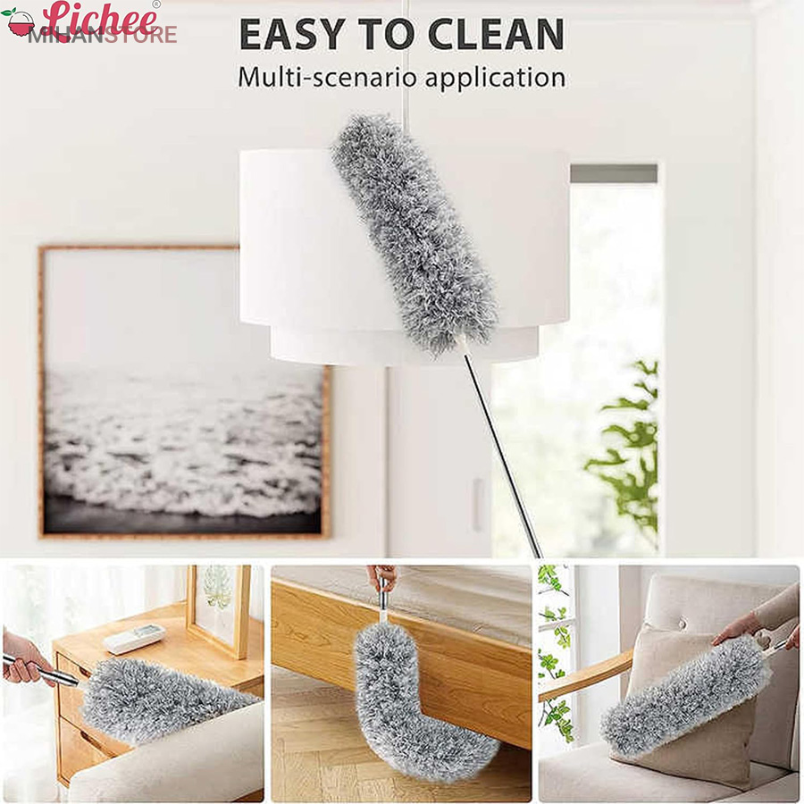 یک ابزار حرفه‌ای و کاربردی برای تمیزکاری سطوح بلند و نقاطی است که دسترسی به آن‌ها معمولاً دشوار است. این محصول با دسته بلند تلسکوپی و سری قابل‌انعطاف، امکان گردگیری سقف، گوشه‌ها، لوسترها، پرده‌ها، بالای کابینت و پشت وسایل بزرگ را بدون نیاز به نردبان فراهم می‌کند.  دسته این گردگیر از آلیاژ سبک و مقاوم ساخته شده و قابلیت تنظیم طول تا ۲.۵ متر را دارد. این ویژگی باعث می‌شود بتوانید بسته به نیاز، طول دسته را کوتاه یا بلند کرده و با تسلط کامل عملیات تمیزکاری را انجام دهید. وزن سبک دسته مانع خستگی دست در استفاده طولانی‌مدت می‌شود و طراحی ارگونومیک آن کنترل بهتری هنگام کار فراهم می‌کند.  سری گردگیر از الیاف میکروفایبر با قدرت جذب بالا تولید شده است که گردوغبار، مو و ذرات ریز را به‌خوبی جذب کرده و از پخش شدن آن‌ها در هوا جلوگیری می‌کند. این الیاف به سطوح حساس مانند شیشه، چوب و لوازم تزئینی آسیبی نمی‌زنند و برای نظافت ایمن کاملاً مناسب هستند.  یکی از مهم‌ترین مزایای این گردگیر، چندحالته بودن سری است. سری انعطاف‌پذیر آن قابلیت خم شدن و تنظیم زاویه دارد و می‌تواند به‌راحتی به گوشه‌ها، کنج‌ها و نقاط نامنظم دسترسی پیدا کند. همچنین در برخی مدل‌ها امکان جدا شدن سری برای شستشو وجود دارد که به افزایش عمر مفید محصول کمک می‌کند.